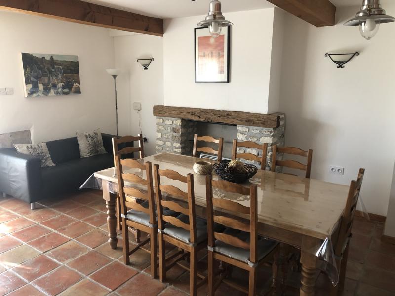 Ce gîte spacieux se compose d'une grande salle à manger/cuisine avec des portes-fenêtres menant au patio. La cuisine est équipée d'éléments intégrés, d'un lave-vaisselle, d'un micro-ondes, d'un réfrigérateur, d'un four ventilé en inox, d'un coin repas, d'une grande table de ferme 6 places, d'un canapé et d'un sol carrelé en terre cuite.