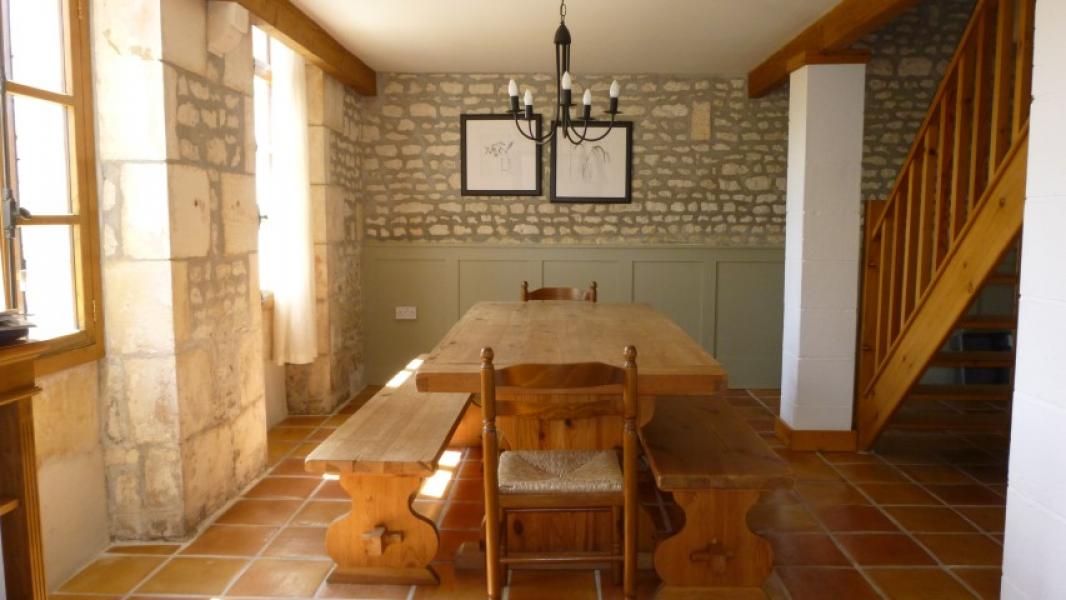 Ce gîte spacieux se compose d'un grand coin cuisine, d'un grand coin repas ensoleillé et d'un salon séparé, avec des sols carrelés en terre cuite.